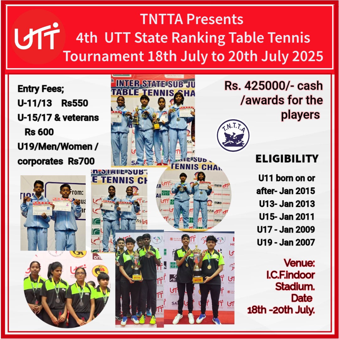 4th UTT State Ranking 18th July to 20th July 2025